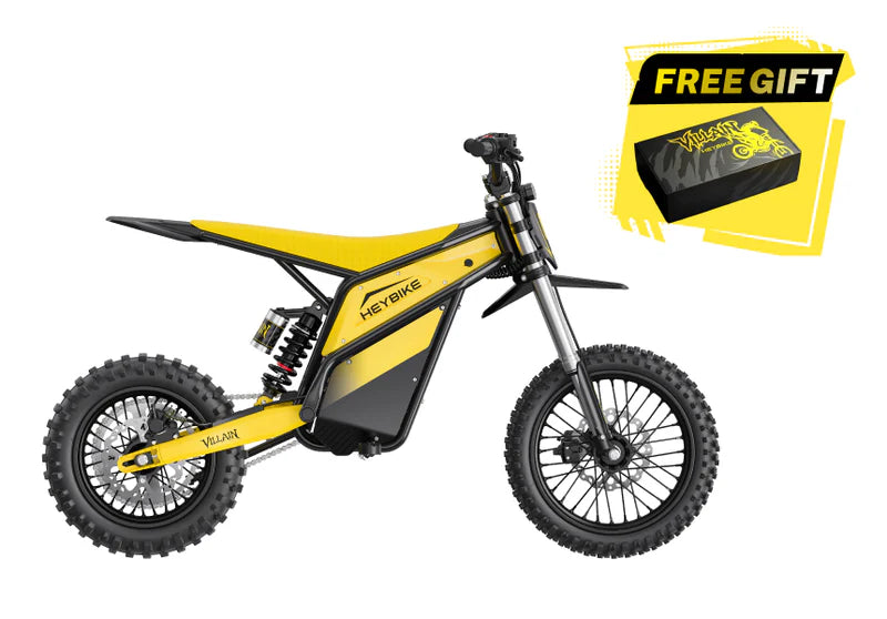 The Heybike Villain is a purpose-built electric dirt bike designed for riders who want serious off-road performance with the simplicity and low maintenance of electric power. Built with aggressive styling, high torque output, and rugged trail components, the Villain delivers a fast, planted, and confidence-inspiring ride across dirt, gravel, and uneven terrain.